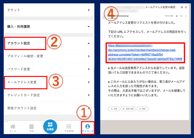 ④ 届いたメール内の「URL」をクリック
